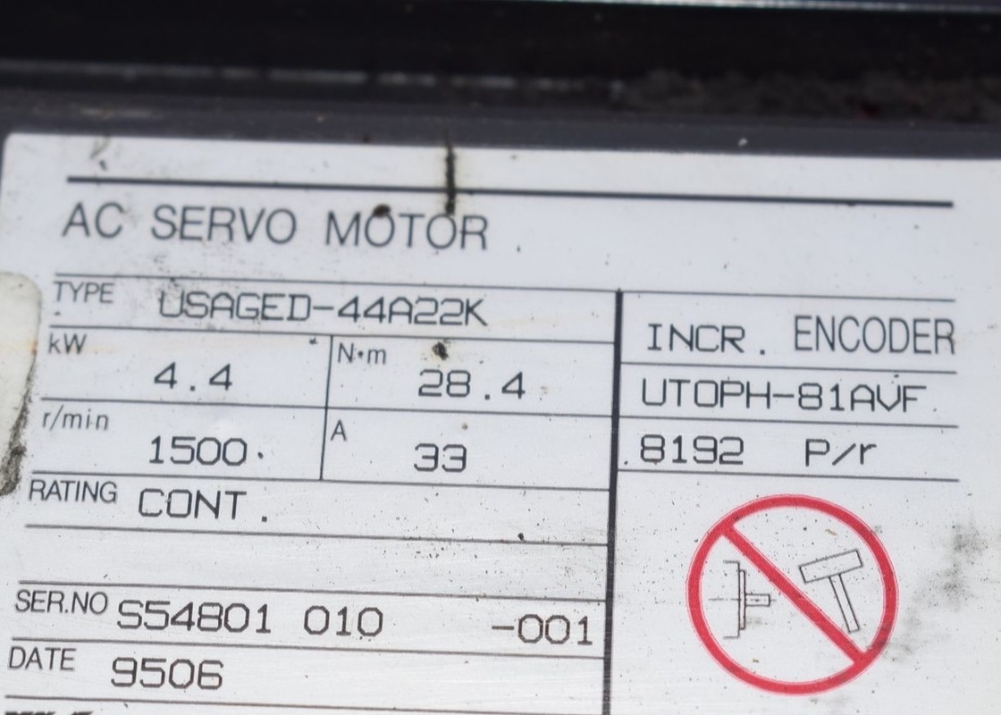 USAGED-44A22K YASKAWA AC Servo Motor Encoder 1500 στροφές ανά λεπτό 33 Άμπερες