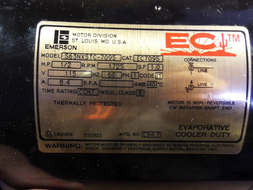 EC7095 S63NXSTC-7095 EMERSON 115V AC EVAPORATIVE COOLER MOTOR